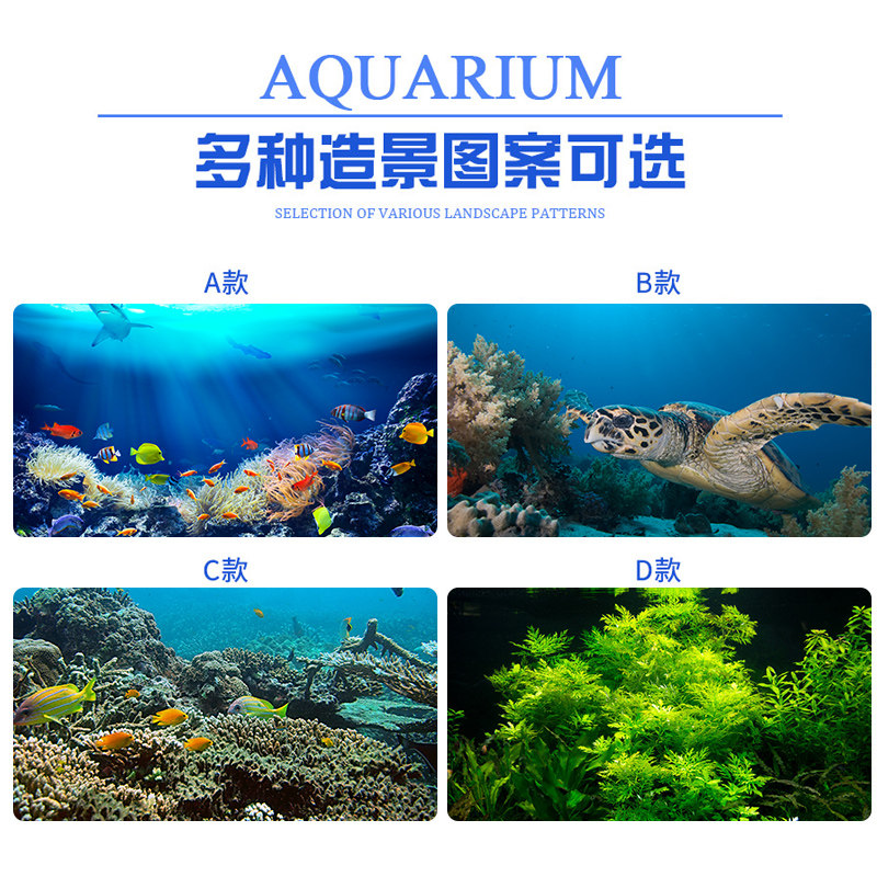新款鱼缸背景贴纸高清图定制立体画蓝白渐变水族箱不透光自粘贴
