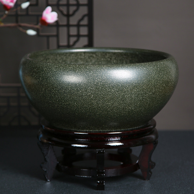 淘宝桌面聚宝盆碗莲小水培苔藓植物盆陶瓷鱼缸睡莲缸阳台客厅茶洗笔洗