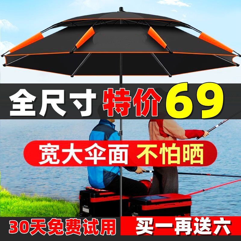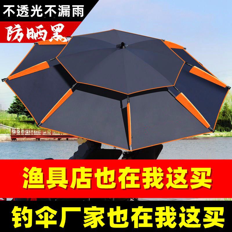 淘钓鱼伞加厚防雨防风暴雨防紫外线垂钓遮阳黑胶2.4米双层折叠万向