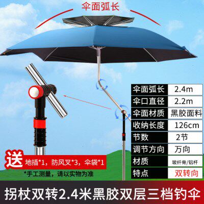 淘宝户外钓鱼伞大钓伞加厚万向双层防雨防晒垂钓遮阳伞折叠拐杖伞