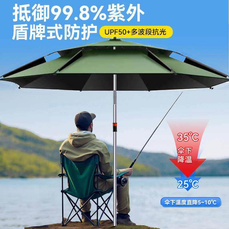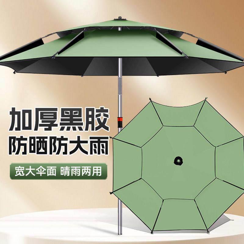 淘宝钓鱼伞2512ds雨新款户外摊专用遮阳大钓伞加厚摆胶防晒防垂钓黑拐