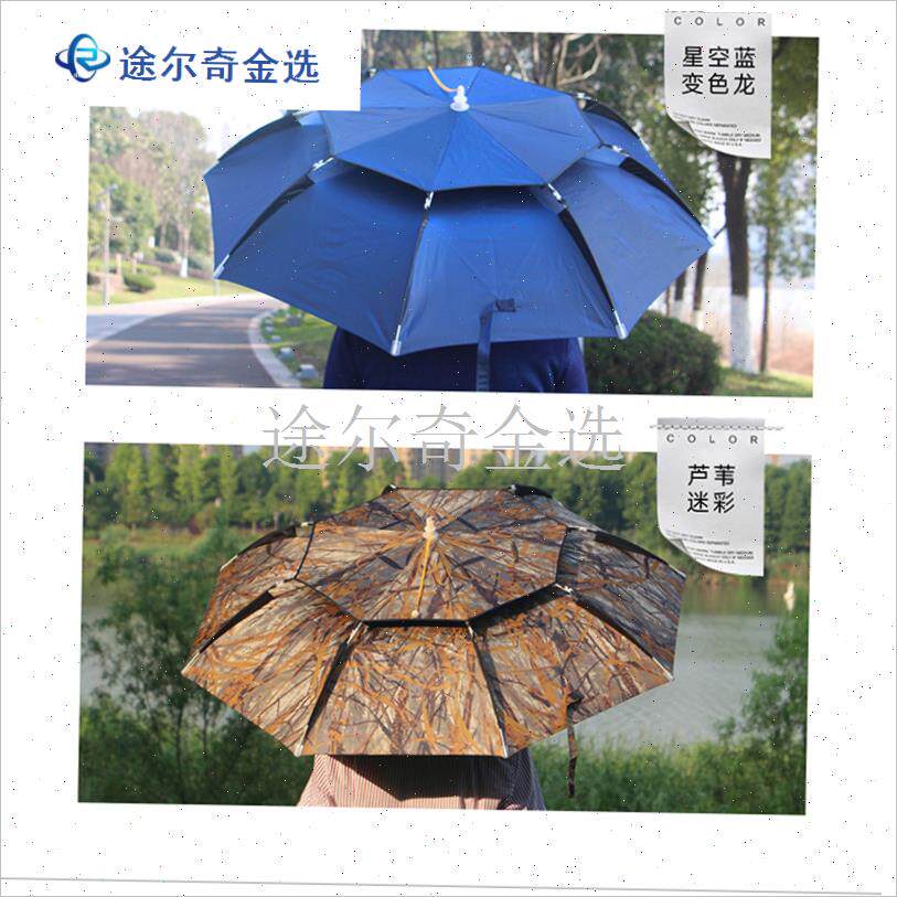 淘钓鱼伞新款伞帽头戴式雨伞可折叠便携式双层头顶伞户外专用遮阳伞
