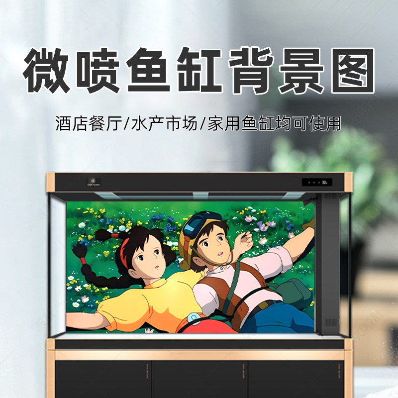 淘宝鱼缸背景贴纸高清图3D立体定制宫崎骏背景外贴海底世界造景自粘画