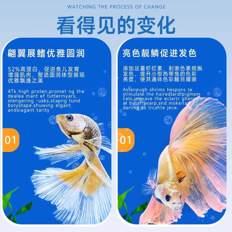 天猫孔雀鱼饲料鱼食小鱼专用斗鱼鳑鲏小型鱼热带鱼粮凤尾斑马小颗粒料