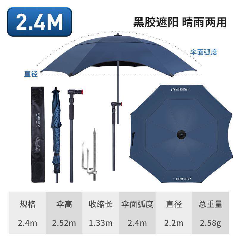 钓箱万向钓鱼伞1.8米2.2米2.4双层直杆黑胶两节防晒防雨大钓伞渔