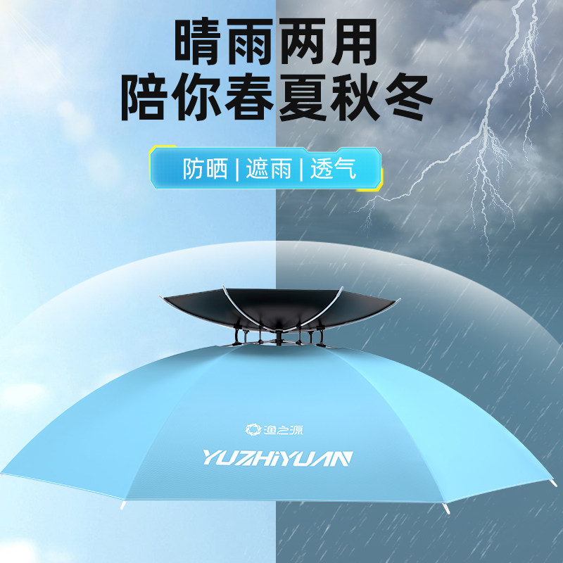 淘头戴式雨伞新款钓鱼伞帽可折叠头顶伞双层大号遮阳防晒野钓专用伞