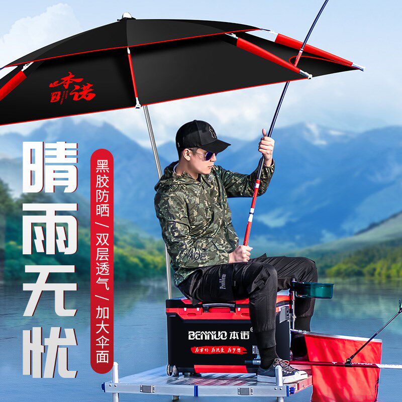 淘钓鱼伞加厚防雨防风暴雨防紫外线垂钓遮阳黑胶2.4米双层折叠万向