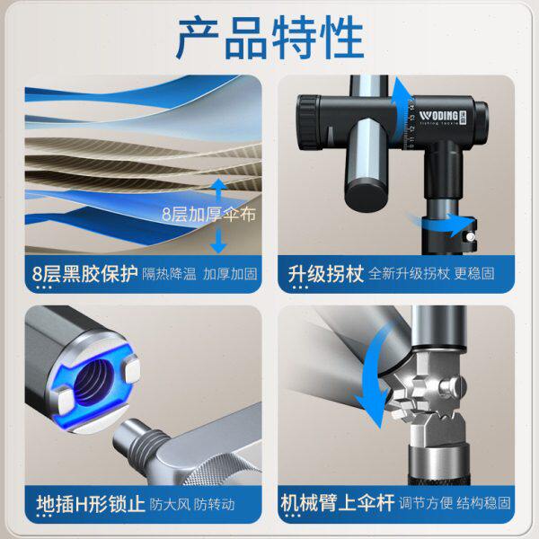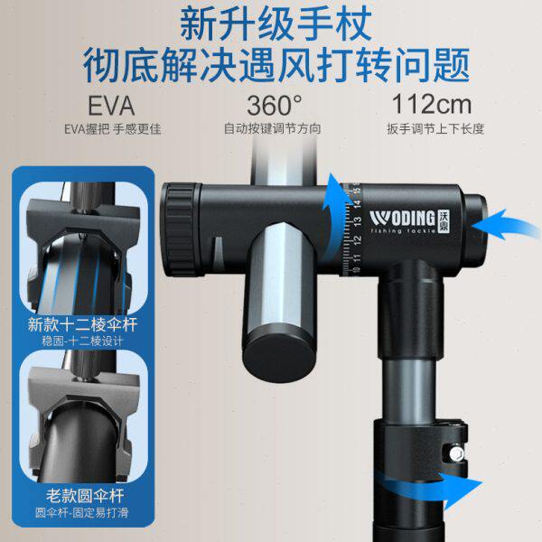 沃鼎2024年全新推出的【第五代机械臂】拐杖伞,融合科技与实用设计,专为户外爱好者与长者打造。采用加厚黑胶伞面,有效阻隔紫外线,防水抗风性能卓越;伞骨精选高强度铝合金材质,结构稳固,轻便耐用。独特棱形垂钓鱼升设计,可360°调节支撑角度,适配多种地形,兼具拐杖与钓鱼支架功能。机械臂关节灵活锁定,操作简便,承重能力强。集遮阳、防雨、助行、垂钓于一体,是户外出行、休闲垂钓的理想伴侣,彰显智能生活新理念。