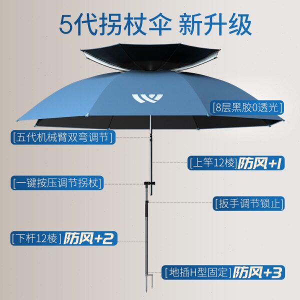 淘宝沃鼎【第五代机械臂】拐杖伞2024新款加厚黑胶铝合金棱形垂钓鱼升