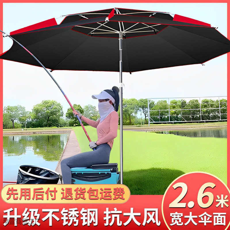 淘伞叔推荐钓鱼伞专用新款双层黑胶遮阳防晒抗风防雨防紫外线