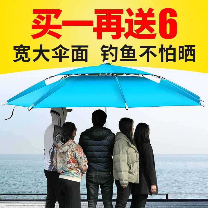 淘头戴伞钓鱼伞单层折叠黑胶遮阳伞户外头顶雨伞垂钓采茶帽子伞钓伞