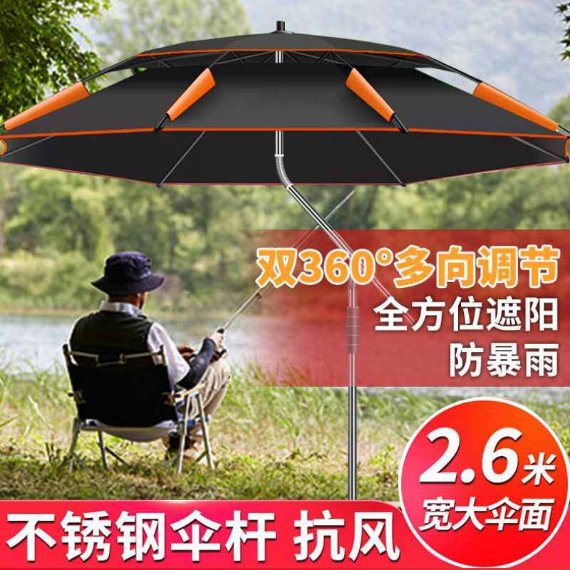 2.6米钓鱼伞大钓伞户外露营伞摆摊伞新款遮阳伞加厚黑胶防雨防风