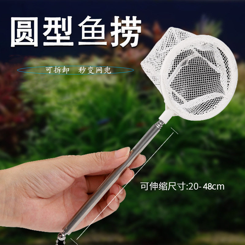 淘不锈钢可伸缩鱼网捞鱼网鱼缸3d鱼捞小号渔捞抄网兜热带观赏鱼长