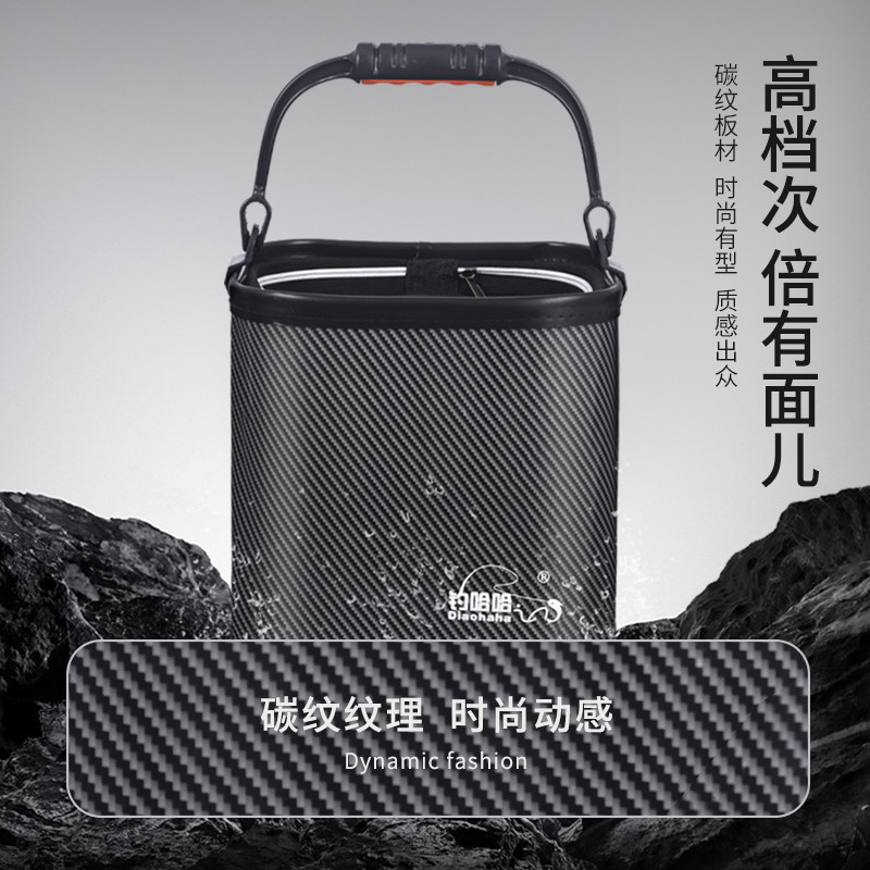 天猫钓哈哈碳纹打水桶加厚加硬材质装鱼桶户外便携一体热压工艺钓鱼桶