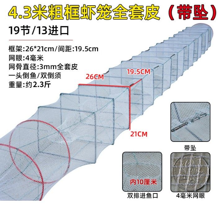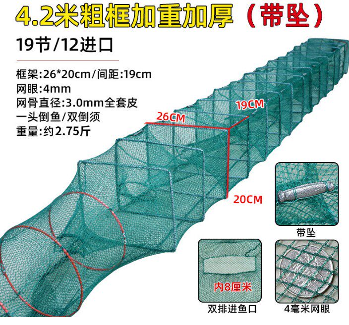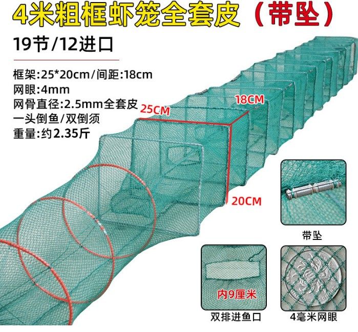 淘10米15米20米虾笼渔网捕鱼网带翅盖笼加密方格布龙虾捕鱼笼捕虾网