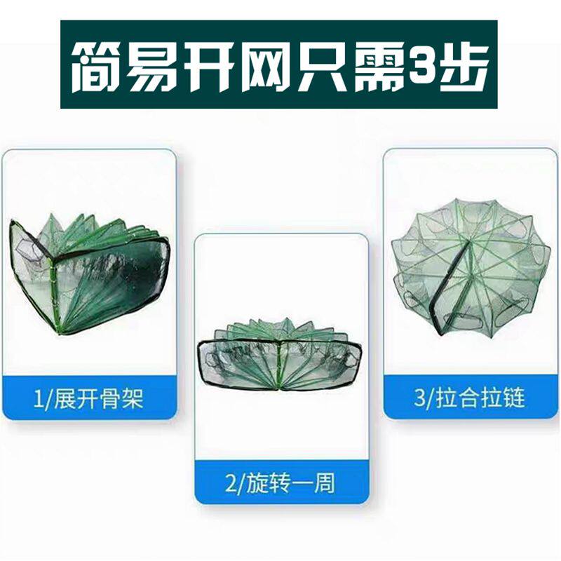 虾笼捕鱼笼加粗伞网自动渔网捕鱼网鳝鱼笼捉虾网诱鱼网带夜光折叠