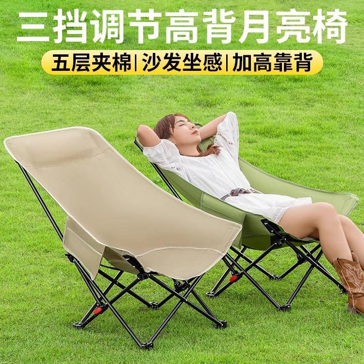 天清系户外折叠椅便携式高靠背椅子月亮椅露营躺椅可调节钓鱼野餐凳