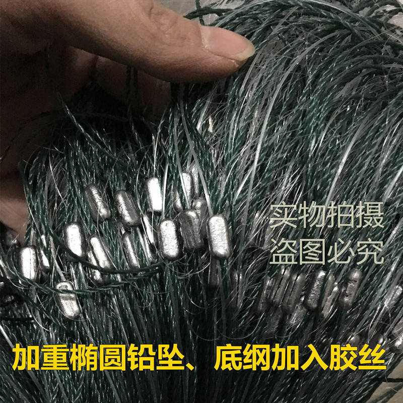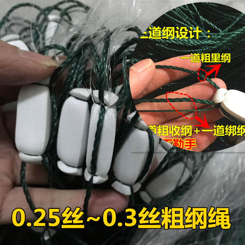 淘8米10米新款三层网粘网丝网绳坠渔网包坠鱼网150米捕鱼网水库沉网