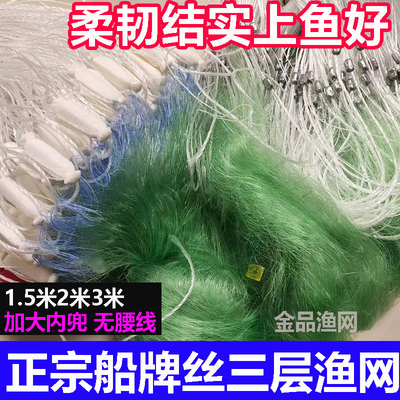 淘宝正宗船牌丝鱼网三层沉网浮网结实柔丝帆船牌大内兜加腰线圆坠渔网