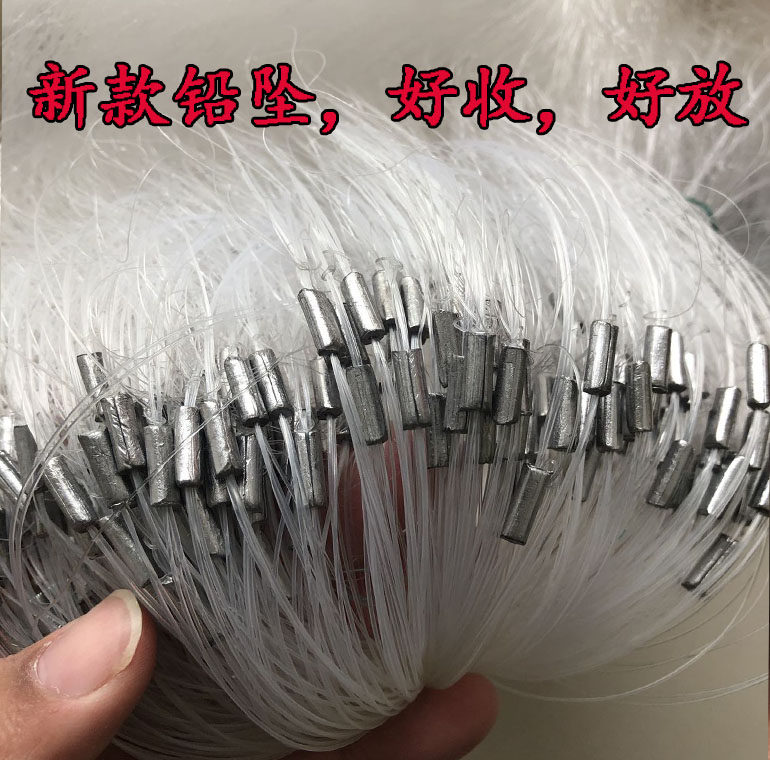 淘8米10米新款三层网粘网丝网绳坠渔网包坠鱼网150米捕鱼网水库沉网