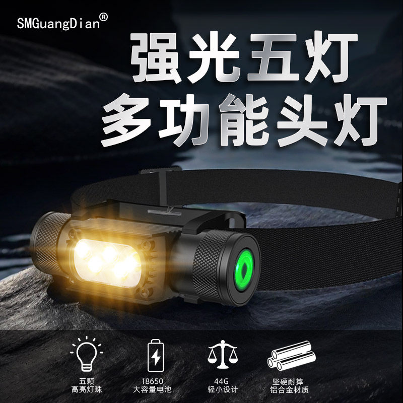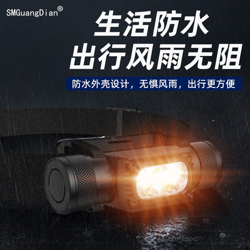 淘宝松美H05A防水轻便跑步登山工作头灯白黄泛光18650电池钓鱼充电