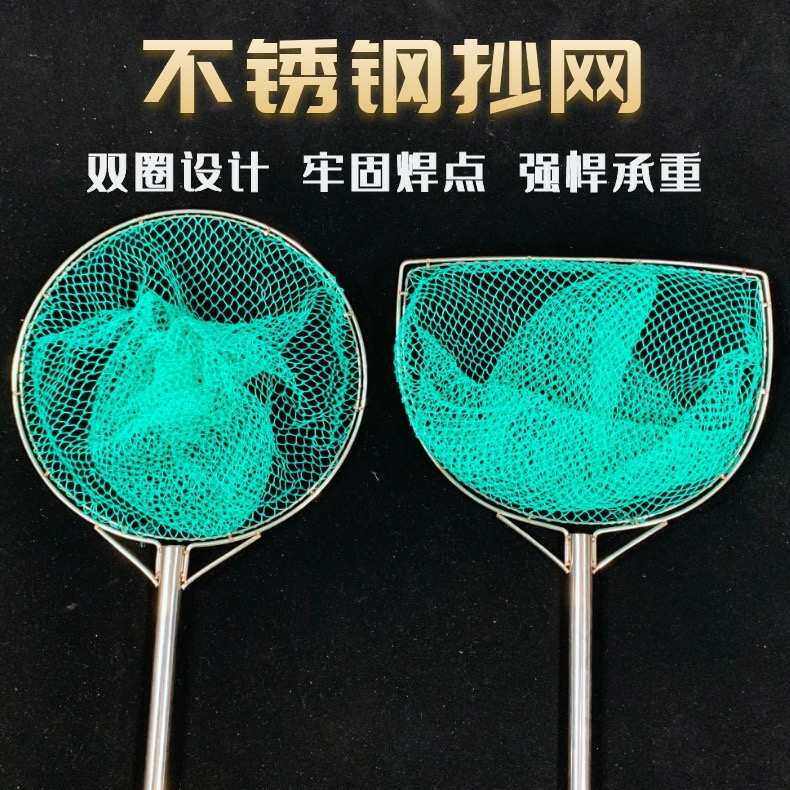浅网双圈304不锈钢捞鱼网市场卖鱼捞海鲜手抄网赶海三角渔捞网兜