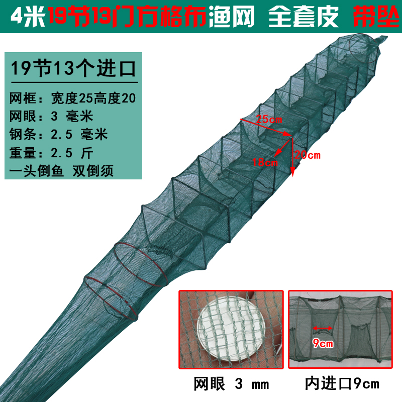 10米15米20米虾笼渔网捕鱼网带翅盖笼加密方格布龙虾捕鱼笼捕虾网