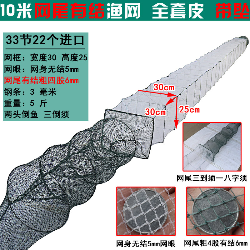 淘10米15米20米虾笼渔网捕鱼网带翅盖笼加密方格布龙虾捕鱼笼捕虾网