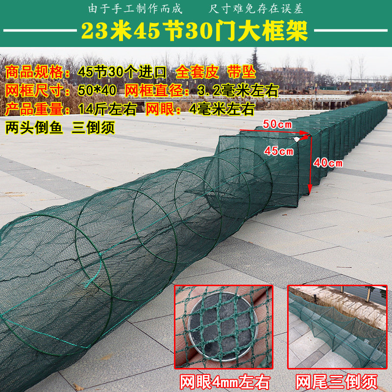 虾笼大框架鱼笼是一款高效实用的折叠式捕鱼工具,专为捕捞河虾、黄鳝、龙虾及小型鱼类设计。采用高强度耐腐蚀材料制成,结构稳固,网眼科学分布,既能有效诱捕又不伤鱼虾。其独特的大框架设计提升了进鱼率,折叠后体积小、便于携带和收纳,适合江河、湖泊、池塘等多种水域使用。入口采用倒须结构,防止猎物逃脱,操作简单,无需复杂技巧。无论是休闲垂钓还是专业捕捞,这款多功能鱼笼都能显著提升捕获效率,是渔民和户外爱好者的理想选择。安全环保,重复使用率高,经济实用。