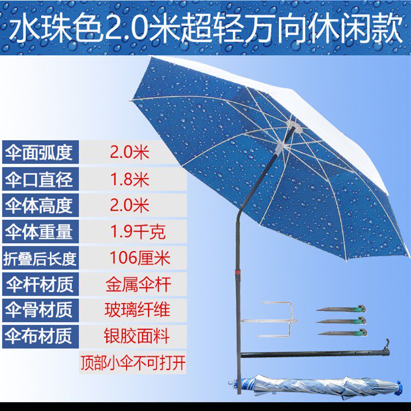 淘宝钓鱼伞1.8-2.4双层万向折叠钓伞防雨晒台垂遮阳伞水珠色
