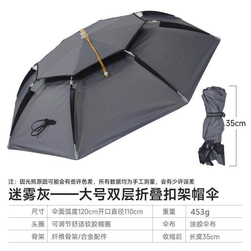 渔之源钓鱼伞帽头戴式雨伞斗笠折叠头顶伞双层大号遮阳防晒帽子伞