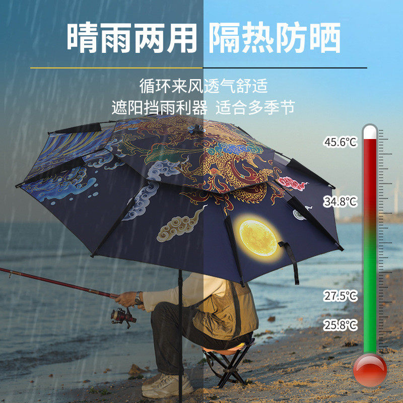 淘新款钓鱼伞帽头戴式雨伞可折叠头顶伞双层大号遮阳防晒野钓专用伞