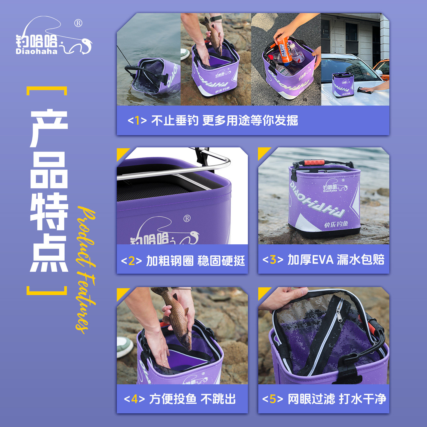 淘钓哈哈折叠活鱼桶多功能大容量碳纹加厚装鱼桶一桶多用户外便携