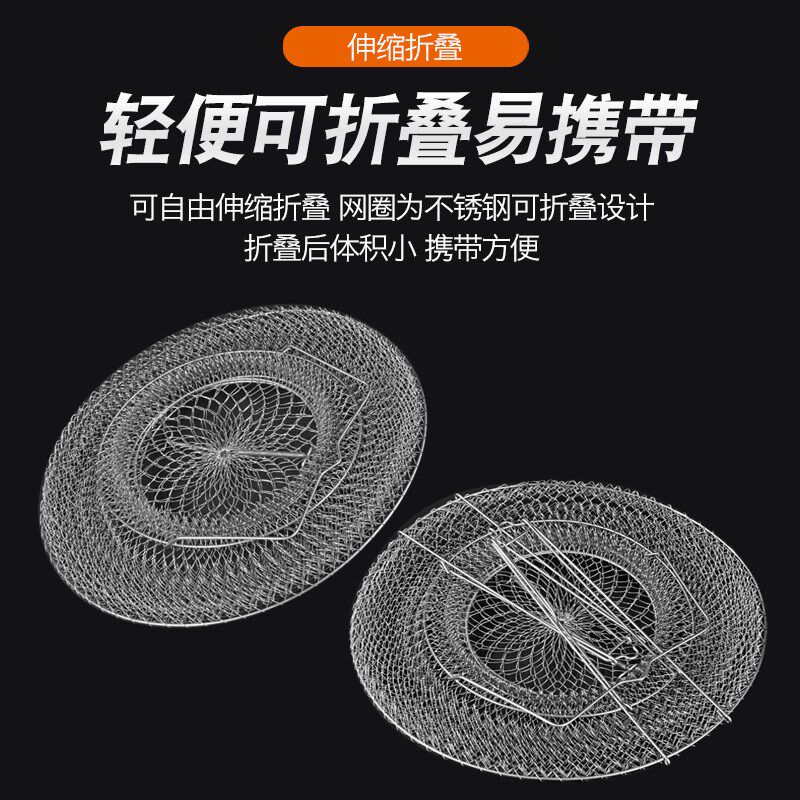 淘宝不锈钢折叠钢防臭丝鱼护鱼篓网兜海钓装鱼螃蟹金属鱼笼速干便携