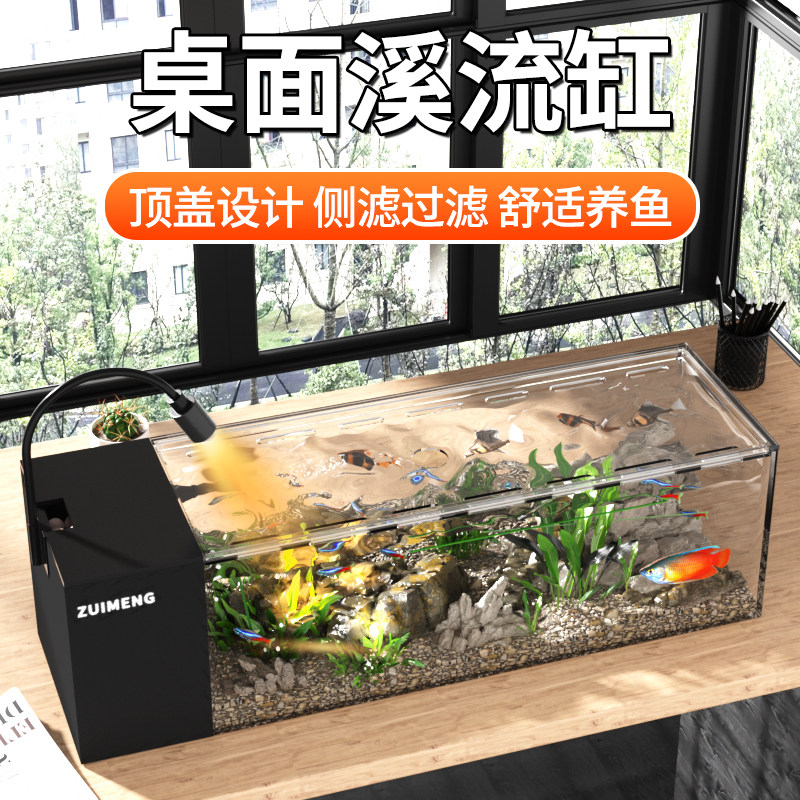 天猫桌面溪流缸小型客厅家用过滤制氧一体式侧滤鱼缸生态造景全套防跳
