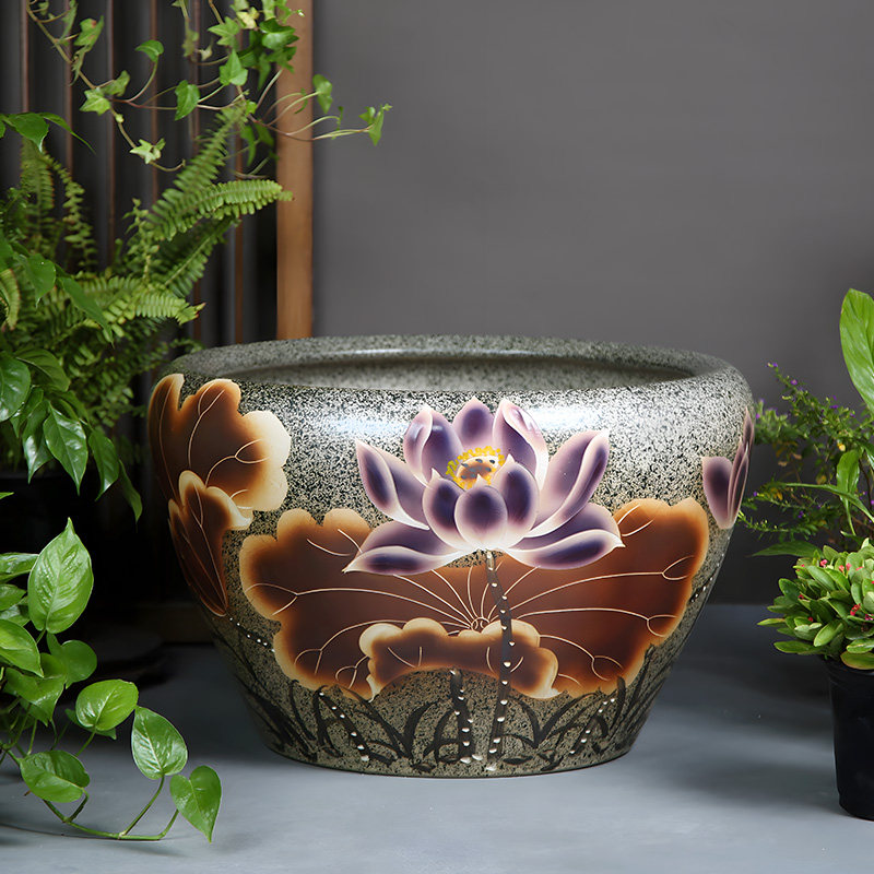 景德镇陶瓷大缸采用千年古法手工烧制,胎质细腻、釉面温润,兼具实用与艺术价值。作为家用造景鱼缸,其宽口深腹设计适合搭配吸水石、绿植等营造自然生态景观,为冷水鱼如锦鲤、金鱼提供宽敞舒适的生活空间。观背式设计便于从上方欣赏鱼群游弋之美,亦可置于庭院、阳台或客厅,增添雅致氛围。陶瓷材质透气性好,有助于水体生态平衡,且经久耐用,抗腐蚀、不易褪色。无论是传统中式庭院还是现代家居,这款大型陶瓷鱼缸都是融合文化韵味与自然生机的理想之选,让养鱼成为一种生活美学。
