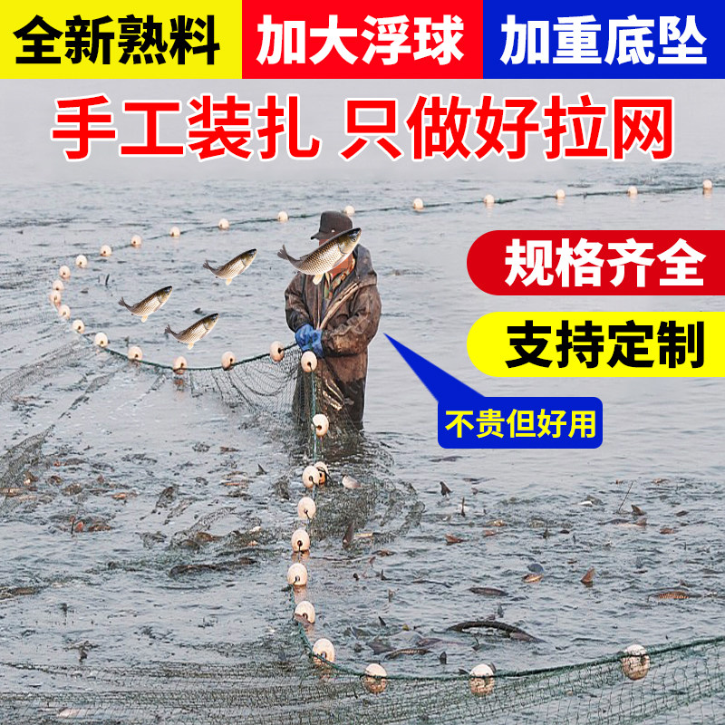 淘宝拉网渔网拖网清塘网抬网鱼塘捕鱼隔网围网抓鱼全新熟料铁链重坠