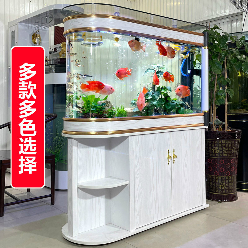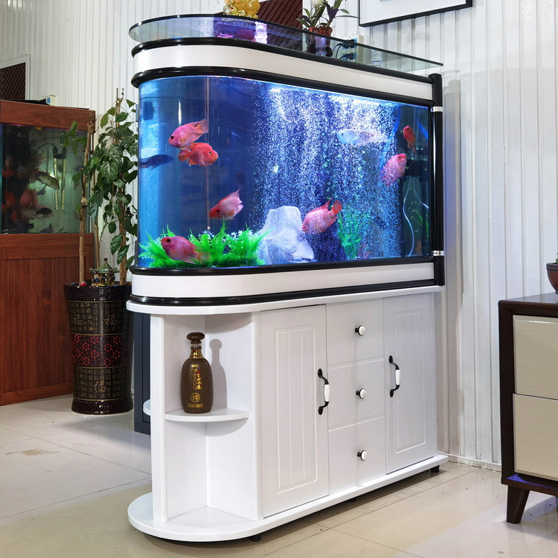 淘宝玄关子弹头鱼缸玻璃生态水族箱中型大型屏风隔断鞋柜家用客厅定制