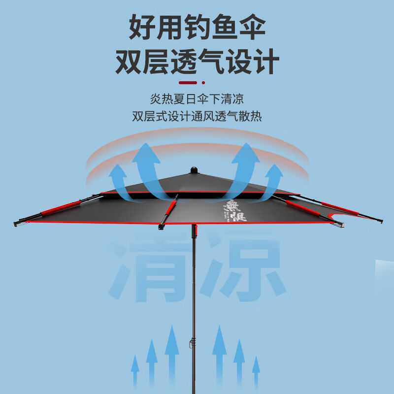 淘宝佳之钓钓鱼伞大钓伞多向野钓黑胶雨伞防晒防暴雨无缝粘胶黑红2.2