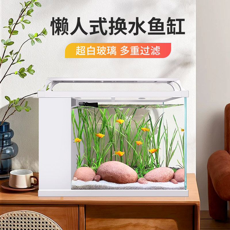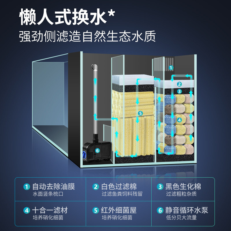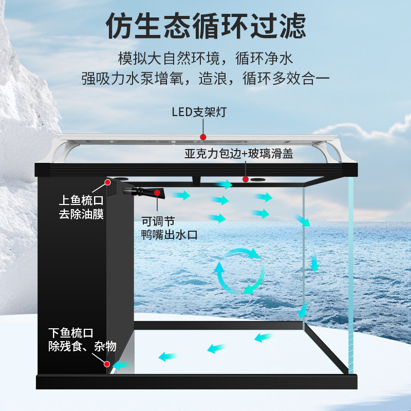 超白玻璃背滤鱼缸过滤制氧一体机小型客厅2026新款懒人免换水全套