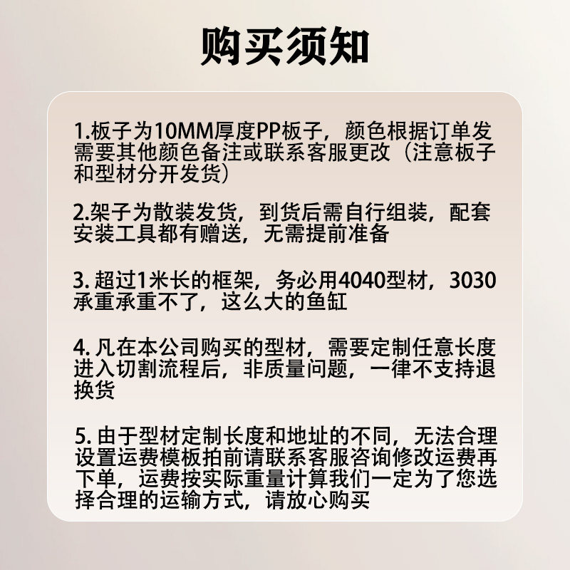 这款DY定制鱼缸架采用高强度铝合金型材打造,结构稳固、承重性强,专为鱼缸、龟缸等水族设备设计。架体配备上下两层PP层板,防潮防腐、易清洁,有效保护柜体并提升实用性。多层设计节省空间,可根据需求灵活调整层高,适用于家庭、办公室或商业展示等多种场景。整体外观简约现代,承重均匀,安装便捷,支持个性化定制尺寸与颜色。铝合金材质轻便耐用,PP层板环保无味,确保使用安全。无论是作为底柜还是独立支架,都能为您的爱鱼提供稳固舒适的家,是水族爱好者理想的选择。