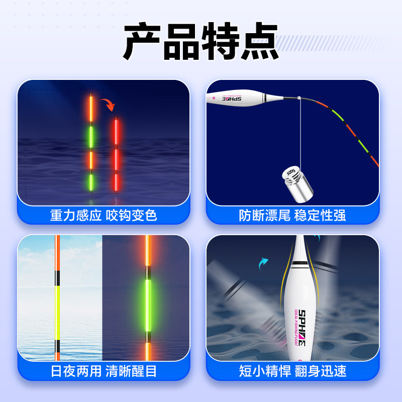 小凤仙浅水漂短尾夜光鱼漂是一款专为鲫鱼设计的日夜两用高灵敏度电子浮漂。采用短尾设计,适用于浅水作钓,稳定性强,抗风浪性能好。内置高亮LED灯珠,夜间自动发光,清晰可见,白天则依靠高灵敏变色示标,实时反映鱼讯。其电子感应系统能精准捕捉轻微咬钩动作,提升中鱼率。漂体轻盈,下沉缓慢,适合精细作钓。整体结构防水耐用,续航持久,是夜钓与晨昏垂钓的理想选择。无论是新手还是资深钓友,都能轻松掌握,享受高效垂钓乐趣。