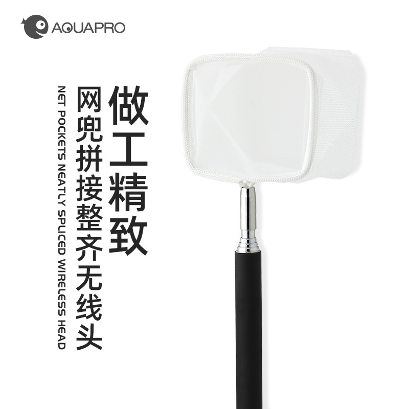 不锈钢可伸缩捞鱼网鱼抄3D虾捞鱼缸用抄网鱼捞隔离伸缩杆方形吸盘