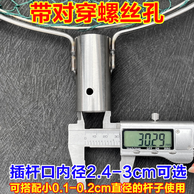 淘实心不锈钢抄网加粗单头一体抄网圈可折叠捞鱼网大物钓鱼钢圈配件