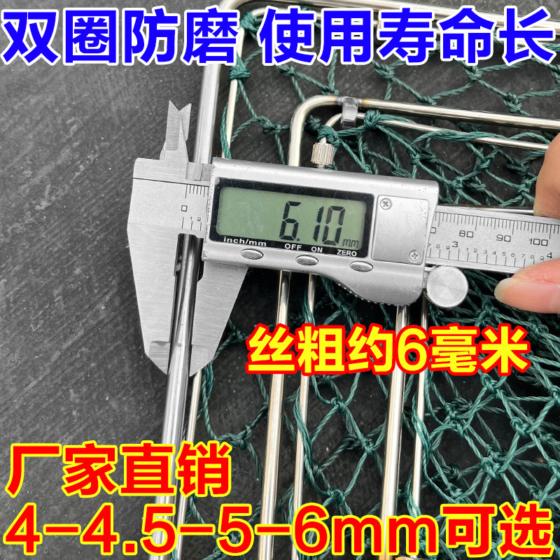 淘宝双圈防磨实心不锈钢抄网头加粗24股手工抄网兜户外水库大物捞鱼网