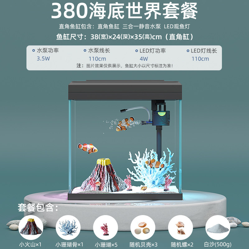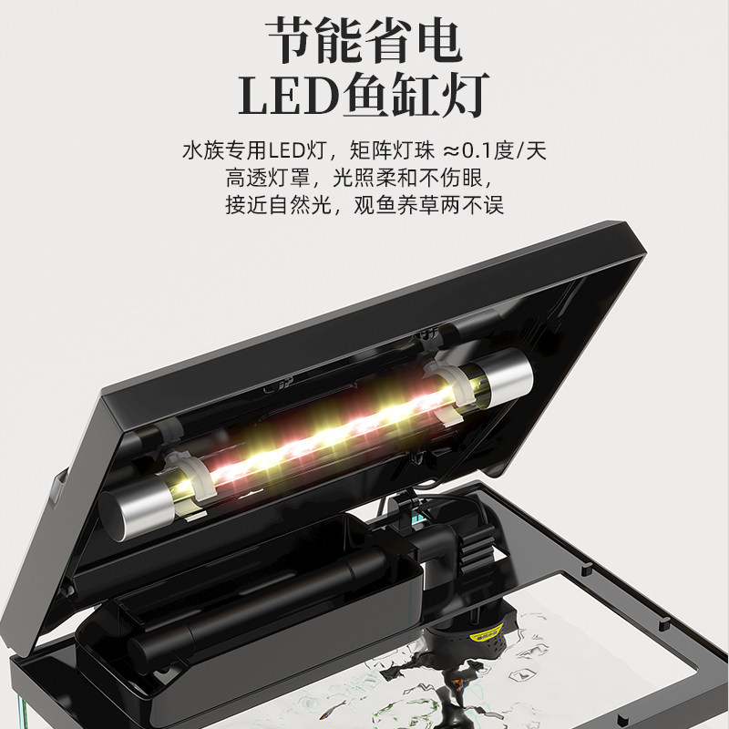 天猫2025新款小型家用金鱼缸循环过滤制氧三合一体桌面客厅生态玻璃缸