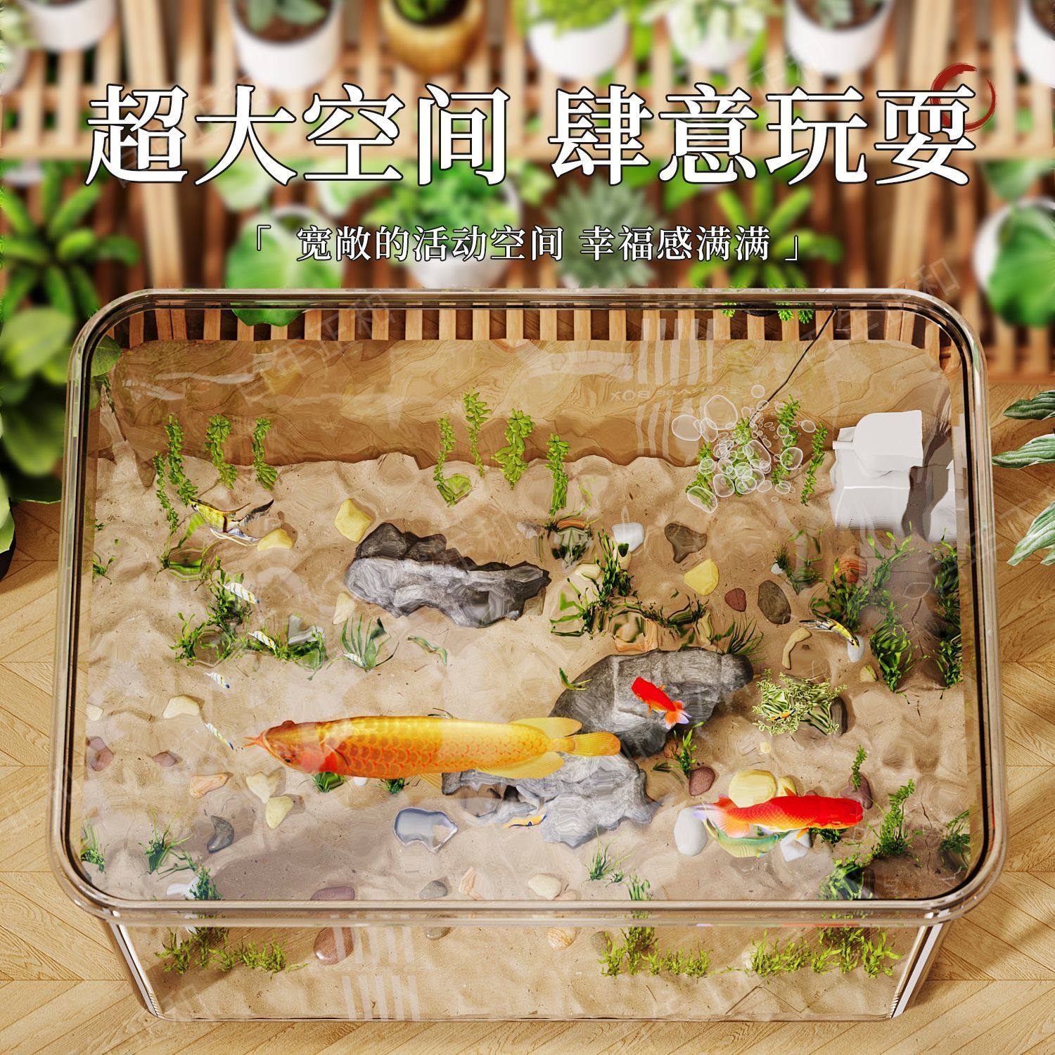 天乌龟缸家用造景过滤循环晒台爬台亚克力生态混合养鱼缸小型周转箱