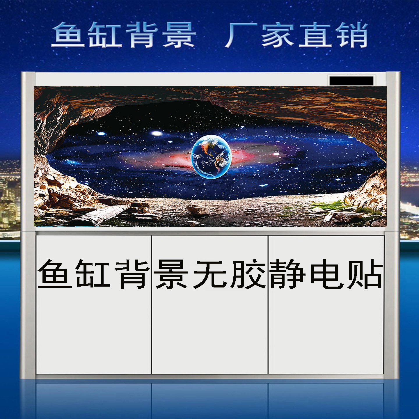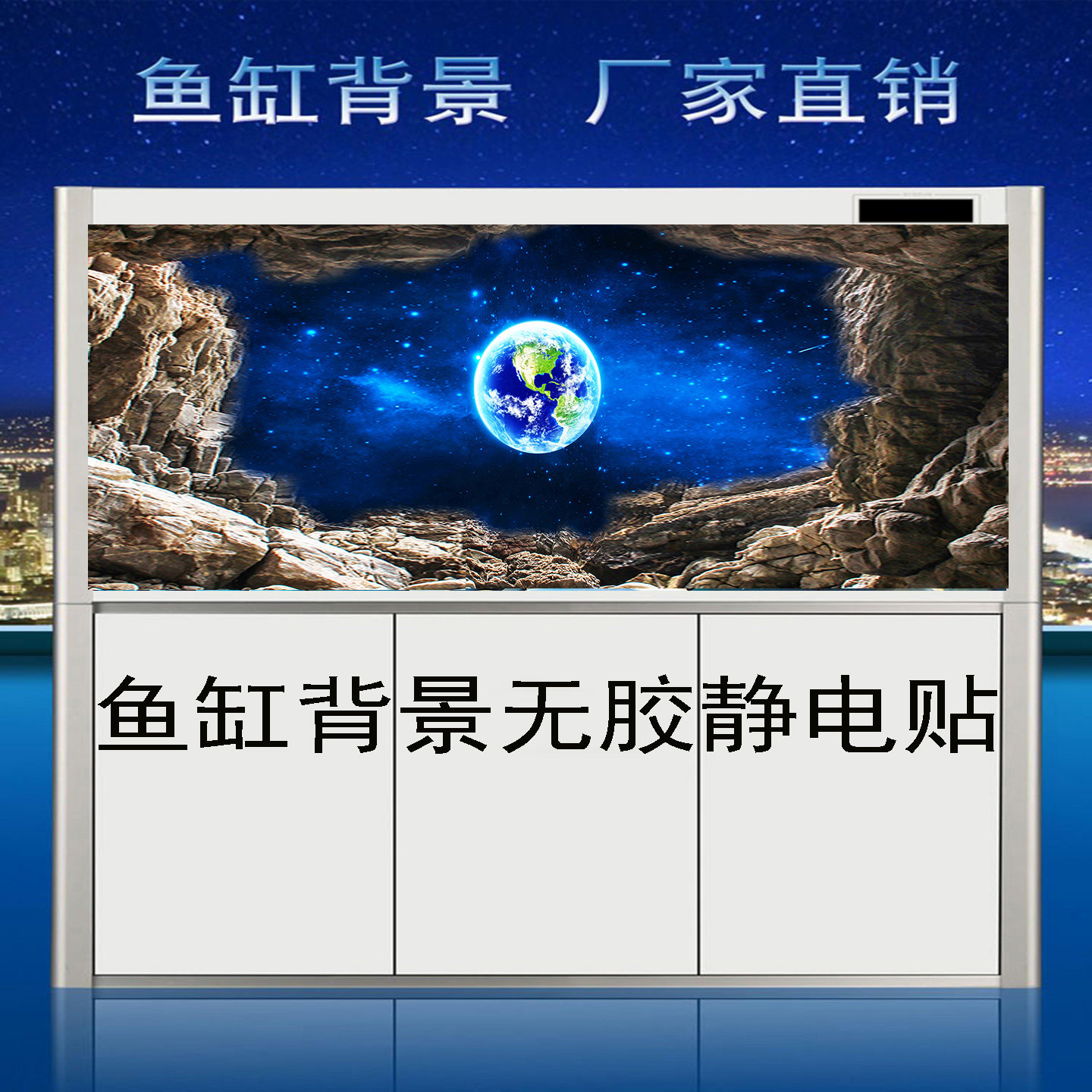 淘宝鱼缸背景贴纸山洞地球高清水族箱星空3D立体画壁纸自粘防水静电贴