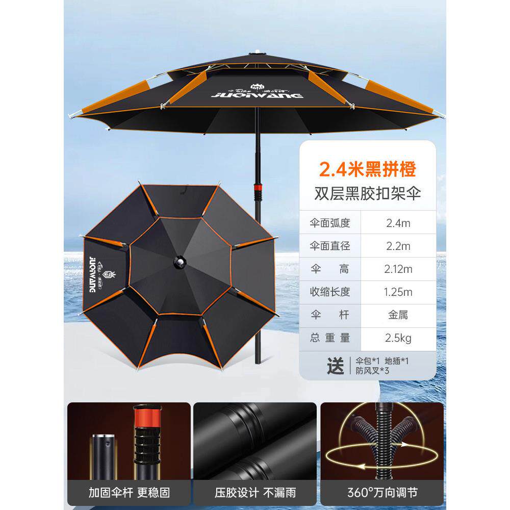 淘钓鱼伞加厚防雨防风暴雨防紫外线垂钓遮阳黑胶2.4米双层折叠万向