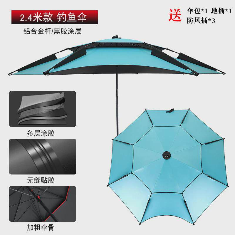 淘宝批发户外钓鱼伞2.4米2.2米万向黑胶加厚防雨钓伞折叠垂钓伞台晒